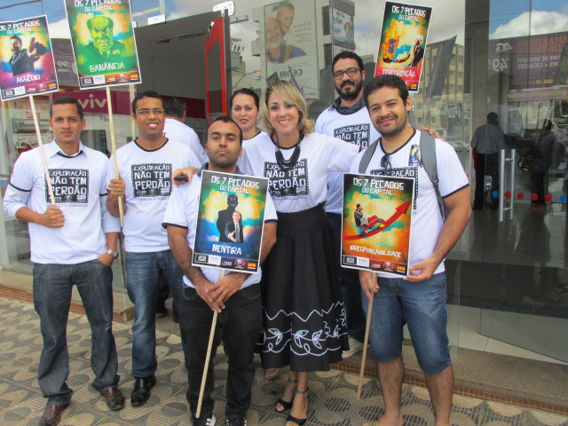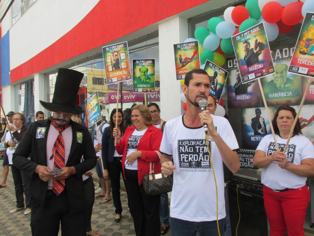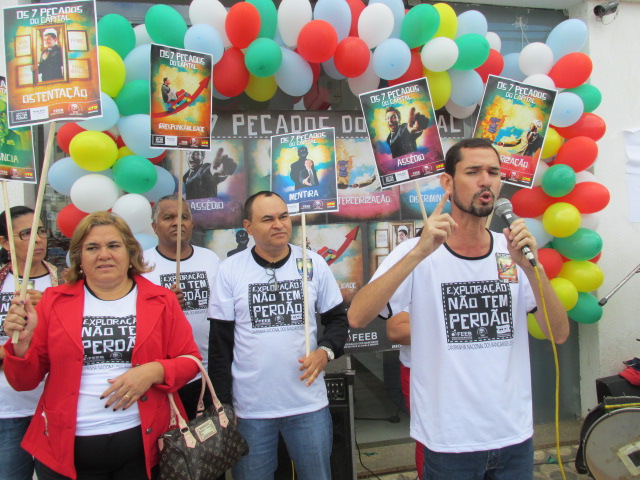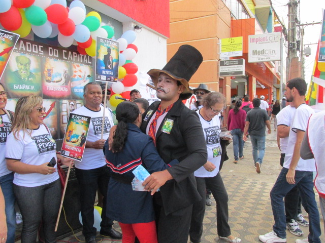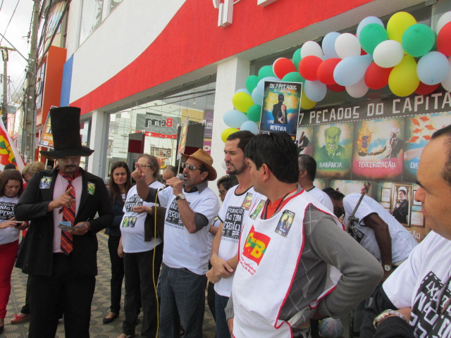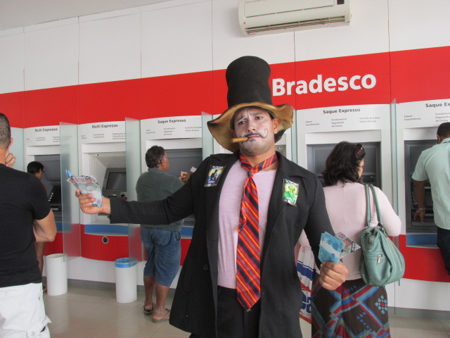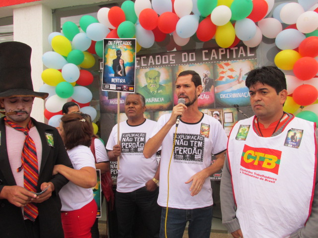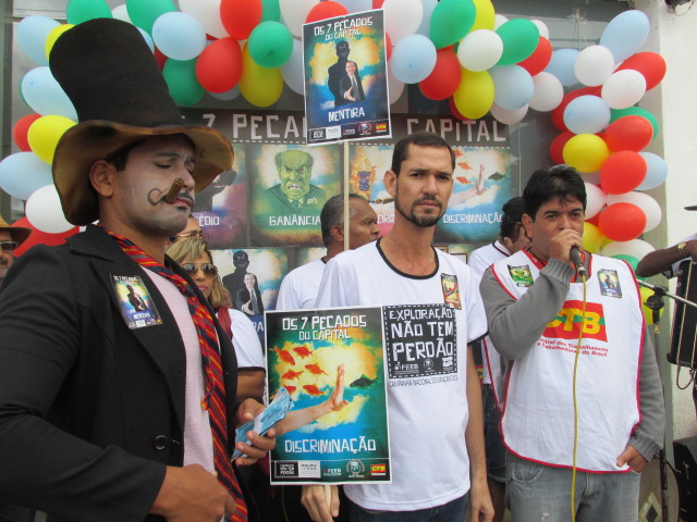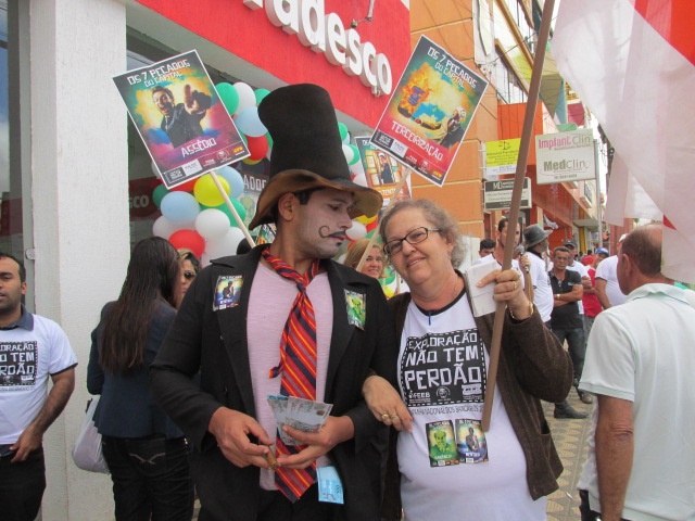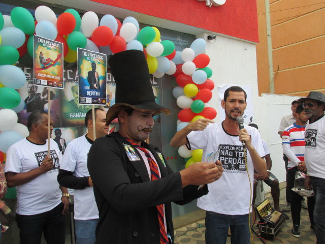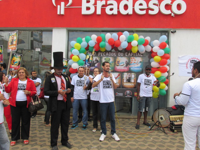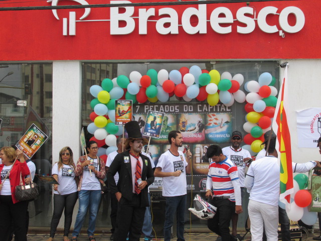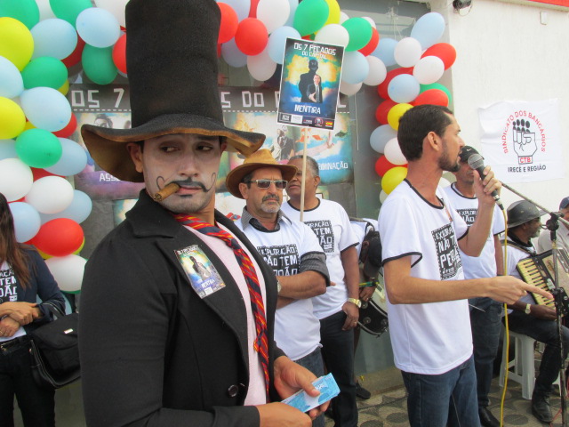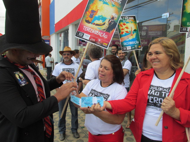 O evento que teve a participação de bancários de várias agências, foi animado pelo forrozeiro Zé Bigode e contou com performance teatral representando o “banqueiro” e a sua ganância.