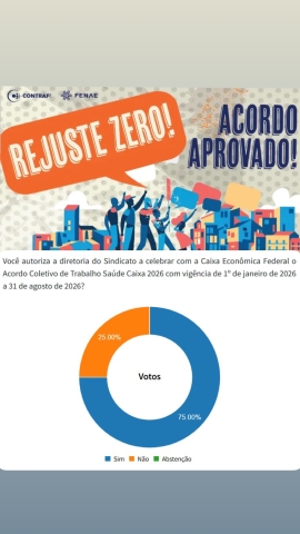 As empregadas e empregados da Caixa Econômica Federal, titulares do Saúde Caixa, aprovaram a proposta de Acordo Coletivo de Trabalho (ACT) específico do plano de saúde em assembleias realizadas por sindicatos da categoria em todo o país. Do total de votantes no sistema centralizado pela Contraf-CUT, 65,84% foram favoráveis ao acordo. O acordo foi aprovado em todas as capitais e nas grandes bases sindicais, exceto em Belo Horizonte. A deliberação foi realizada de forma remota, por meio de plataforma eletrônica de votação, das 19h de terça-feira (11), às 14h desta quarta-feira (12). Aposentados e pensionistas titulares do plano também participaram do pleito. O resultado não inclui as bases do Seeb/SP, Seeb/BA e Seeb/ES, que utilizam sistema próprio de votação.