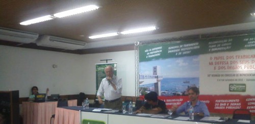 O Representante da AFBNB da cidade de Morro do Chapéu, Luíz Henrique Barbosa (Lula), está participando e acompanhando os debates durante toda a reunião em Salvador (BA). O Presidente da Federação dos Bancários da Bahia e Sergipe, Emanoel Souza, participou da mesa de abertura do evento.
