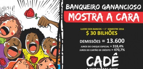 Em plena crise econômica os cinco maiores bancos brasileiros (Bradesco, Itaú Unibanco, Santander, Banco do Brasil e Caixa Econômica Federal) somados apresentaram, no primeiro semestre de 2016, o lucro líquido de R$ 29,7 bilhões. Mesmo apresentando lucros expressivos, os cinco bancos fecharam mais de 13.600 postos de trabalho em relação ao mesmo período de 2015 e, juntos, fecharam 422 agências bancárias.