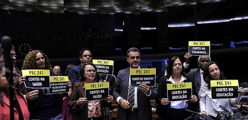 Aprovada em primeiro turno na madrugada desta terça-feira (11) pela Câmara dos Deputados, com 366 votos a favor, 111 contra e duas abstenções, a PEC 241 - proposta que institui um teto para gastos públicos - é uma ameaça cada vez mais concreta. Haverá mais uma votação na Casa, em segundo turno, cuja data ainda não foi definida, e depois o projeto, que congela e reduz por 20 anos investimentos públicos em áreas como Saúde e Educação, segue para o Senado. Parlamentares da oposição e especialistas dizem que a proposta agrava a crise no Brasil e fere direitos previstos na Constituição. O texto da emenda ainda modifica a regra de reajuste do salário mínimo, que se limitará à variação da inflação, vetando a possibilidade de aumento real acima da inflação, como ocorre atualmente.