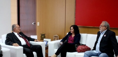 O ministro da Cultura, Roberto Freire, recebeu, na tarde da última quinta-feira (24), a presidenta do Sindicato dos Bancários de São Paulo, Juvândia Moreira, e o presidente da Confederação Nacional dos Trabalhadores do Ramo Financeiro (Contraf-CUT), Roberto Antônio von der Osten. O principal tema do encontro foi a renovação do Vale-Cultura, um cartão magnético de R$ 50 mensais que permite que o beneficiário adquira bens e serviços culturais.