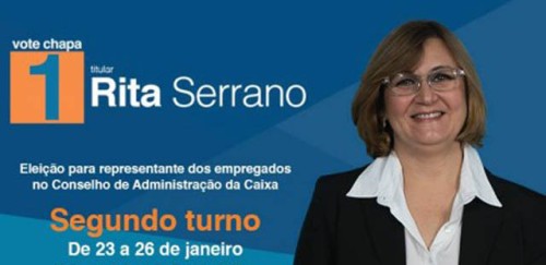A atuação de Rita Serrano junto aos empregados da Caixa e pela manutenção dos Bancos Públicos é reconhecida de longa data pela categoria bancária, assim como sua experiência profissional em várias funções na empresa: foi caixa, supervisora, gerente e coordenador.a