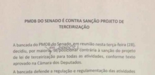 Sob sua liderança, a bancada do PMDB não vai apoiar a terceirização selvagem, para todas as atividades, conforme aprovado na Câmara e desejado por Michel Temer, o drácula dos direitos sociais.