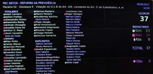 Um forte esquema de segurança garantiu a conclusão da aprovação da PEC da Previdência (PEC 287/2016) pela Comissão Especial da Câmara na terça-feira (9). Amparada pela segurança, a comissão criada especificamente para analisar a proposta votou o último destaque. O texto-base do relator, Arthur Maia (PPS-BA), foi aprovado na última quarta-feira (3), com 23 votos a favor e 14 contra. O placar se repetiu ontem, quando quase todos os destaques (emendas) ao texto base foram rejeitados. A proposta agora seguirá para debate e votação no Plenário da Câmara, onde precisa de 308 votos para ser aprovada.