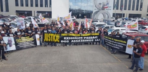 Sete anos após o assassinato do sindicalista Paulo Colombiano e de sua esposa Catarina Galindo, a CTB Bahia juntamente com familiares e amigos realizaram na manhã desta quinta-feira um protesto um protesto para pedir mais agilidade no andamento do processo e punição aos envolvidos. O ato foi realizado em frente ao Tribunal de Justiça da Bahia, no Centro Administrativo, com a presença de lideranças do movimento sindical e social.