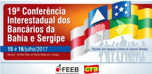 “Resistir aos Ataques contra nossos direitos’’, este será o tema central da 19ª Conferência Interestadual dos Bancários da Bahia e Sergipe, que acontece nos dias 15 e 16 de julho, no Mercure Del Mar Hotel, na orla de Atalaia, em Aracaju, Sergipe.
