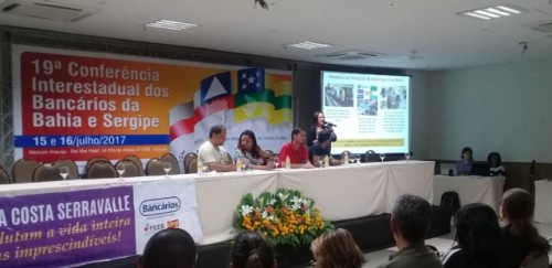 O presidente do Sindicato dos Bancários de Irecê e Região, Carlos Alberto, coordenou os trabalhos da mesa de debate junto com a Diretora de Gênero da Federação dos Bancários da Bahia e Sergipe, Grassa Felizola, o Coordenador do Sindicato dos Bancários do extremo Sul da Bahia, Carlos Eduardo e o presidente do Sindicato dos Bancários de Juazeiro e Região, Maribaldes Silva. Ainda sobre o tema da mesa, o diretor do Sindicato e funcionário do BNB/Morro do Chapéu (BA), Edson Ferreira contribuiu com o debate em sua intervenção, destacando: "a necessida de envolvimento de toda a categoria no acompanhamento do crescimento da digitalização, buscando interagir com essas novas ferramentas para impedir que elas venham substituir o emprego humano, já que a indústria 4.0 são uma realidade tanto nos bancos privados quando nos bancos públicos".