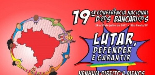 Com o mote “Lutar, defender e garantir. Nenhum direito a menos!”, a 19ª Conferência Nacional dos Bancários começa nesta sexta-feira (28), no hotel Holiday Inn, em São Paulo. Até o dia 31 de julho, 696 bancários, entre delegados, membros do Comando Nacional dos Bancários e observadores vão debater as ações para a difícil conjuntura nacional que se apresenta.