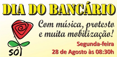 Nesta segunda-feira, 28 de agosto – Dia do Bancário, o Sindicato dos Bancários de Irecê e Região realizará o tradicional ato pela passagem e comemoração da data histórica da categoria. O evento acontecerá em frente a agência do Banco Bradesco no centro da cidade de Irecê, às 8:30h, com a distribuição de bolo e a animação do samba de Peppy do Cavaco.