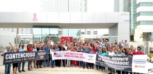 Os bancários da Bahia e Sergipe participaram nesta quarta-feira (18) do Dia Nacional de Luta em Defesa da Caixa 100% pública. O objetivo é alertar a sociedade sobre a ameaça de abertura do capital da empresa e a importância de mantê-la pública para o desenvolvimento de políticas sociais.