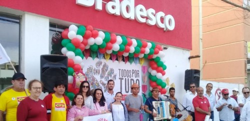 Na manhã desta quinta-feira (28/6), dia da primeira rodada de negociação com a FENABAN, os bancários da Região de Irecê, na Bahia, se reuniram na calçada da Agência do Bradesco para o ato de lançamento da sua Campanha Nacional 2018. Participaram da mobilização bancários do BNB, Bradesco, Caixa Econômica Federal, Itaú e Banco do Brasil. Em clima de festas juninas, os bancários anunciaram a Campanha Nacional que tem como tema: TODOS POR TUDO – RESISTIR E VENCER - os trabalhadores do ramo financeiro protestaram contra a alta lucratividade dos Bancos, contra as inúmeras demissões imotivadas e principalmente pela precarização do serviço bancário.