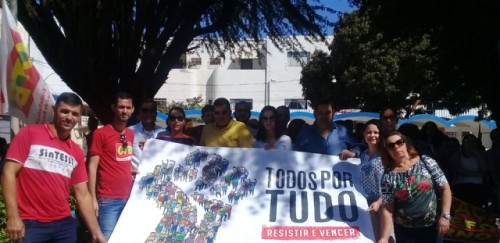 Em Irecê, representantes de entidades sindicais e trabalhadores de diversas categorias, apoiados pela CTB Regional, realizaram manifestação em frente à agência da Caixa Econômica Federal, onde protestaram na tentativa de barrar o retrocesso e abrir caminho para resgatar o projeto de desenvolvimento nacional com democracia, soberania, pleno emprego e valorização do trabalho.