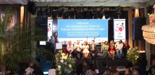 A Federação dos Bancários da Bahia e Sergipe comemorou os 50 anos de fundação na última sexta-feira, 23 de novembro, com duas atividades: um ato na Assembleia Legislativa da Bahia, na parte da manhã, e uma solenidade festiva realizada no Cerimonial Vila São José, em Salvador, durante a noite.