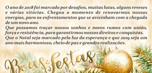 Desejamos à nossa categoria e demais trabalhadores que o momento festivo seja de muita diversão, paz e tranquilidade.
