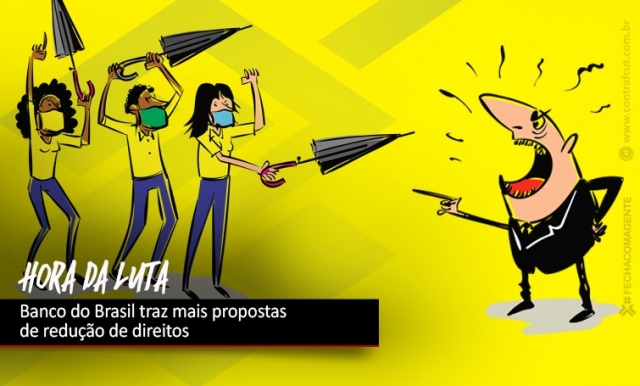 Depois de apresentar uma proposta para redução do período de avaliação para retirada de comissão de função, com o consequente rebaixamento de salários, na reunião desta segunda-feira (17) com a Comissão de Empresa dos Funcionários do Banco do Brasil (CEBB), o banco trouxe mais quatro propostas que podem trazer prejuízos aos funcionários: a proibição da acumulação e venda dos cinco dias de folga a que o funcionário tem direito a cada ano; o fim do descanso de 10 minutos a cada hora para os funcionários do autoatendimento; o registro de ponto do intervalo de 30 minutos para almoço; e a implantação do ponto eletrônico para os funcionários do BB Seguridade, BBDTVM e outras subsidiárias do banco.