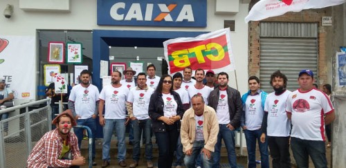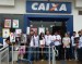 Mesmo com a chuva e o frio, os bancários se mobilizaram e participaram do evento em frente a agência da Caixa Econômica Federal, no centro da cidade. Mais uma vez, os cartazes destacando os eixos da Campanha, denunciaram à população as principais demandas da categoria.